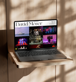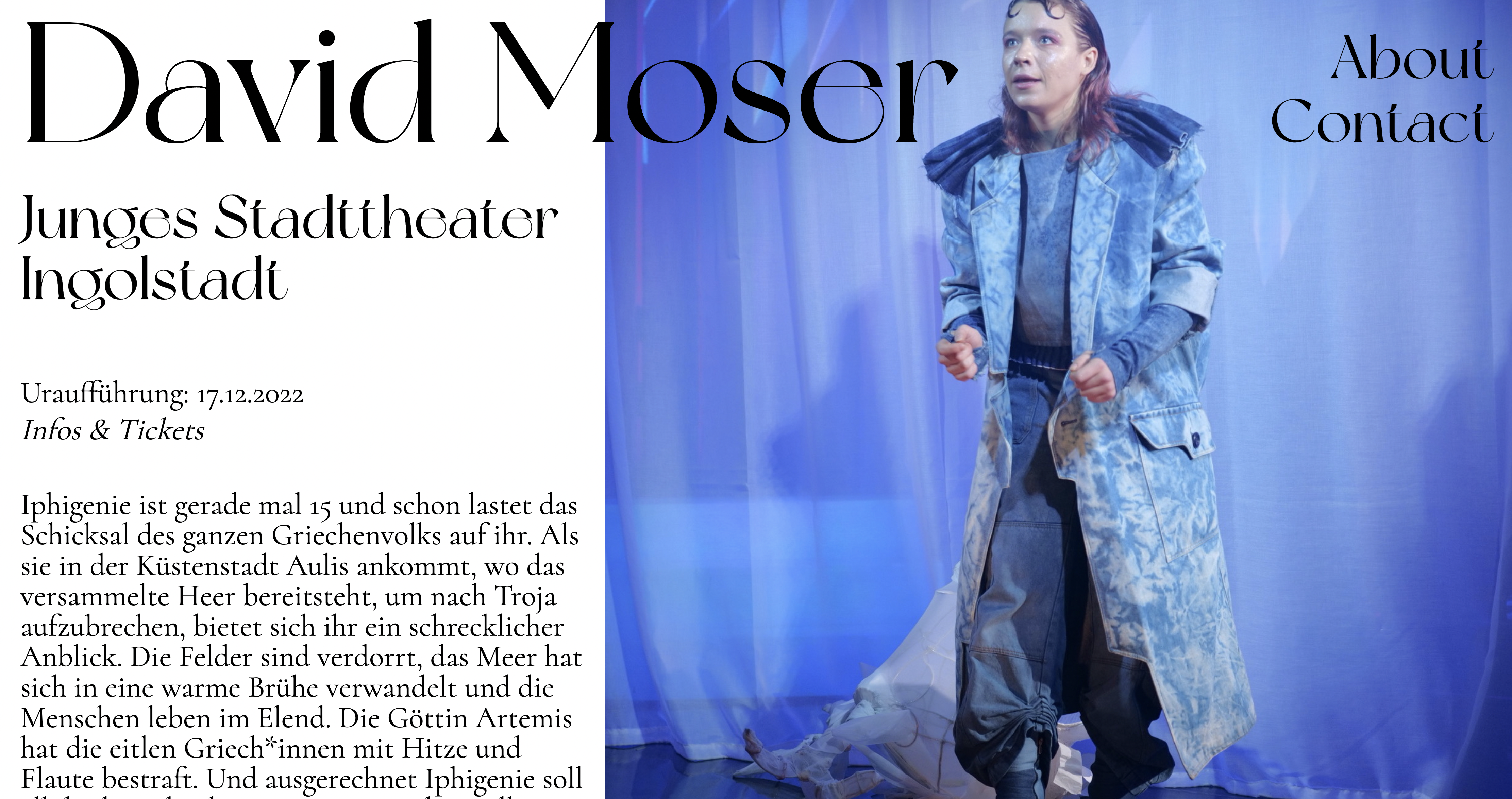 When I saw David‘s picture documentation I decided they should have the central place on the website. They‘re so strong and cinematographic that you don‘t need more to be drawn into a fictional world. They always occupy a bigger part of the screen then other design elements, which contrast them by being minimalistic and slick.